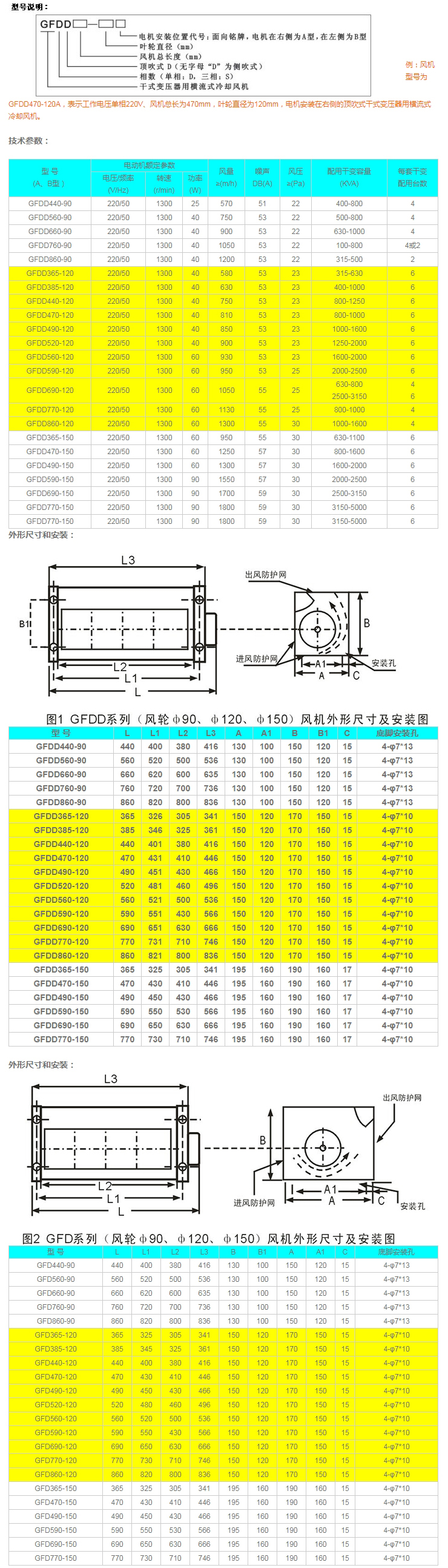 产品概述: GFDD系列顶吹式干式变压器用横流式冷却风机(下称:干变横流冷却风机)主要用于干式变压器冷却增容,及电子设备、 配电柜、高低压开关柜等强迫送风冷却。干式变压器配上本风机散热后,可增容40~50%运行,从而大大提高干式变压器的承载能力,并延长 了干式变压器的使用寿命,是国内外厂家普遍采用的最经济有效的方式。 本产品严格按JB/T8971-1999《干式变压器用横流式冷却风机》设计生产。电机定、转子铁芯采用优质冷轧硅钢片;低噪 音轴承;叶轮采用铝合金表面电泳处理,再通过精细的动平衡调校;左右端板采用不锈钢板冲压成型,进风板、出风板和导风板采用铝合金 型材搭扣组合;整个风机结构合理,造型美观,具有风量大、噪声小、温升低、寿命长、运行平稳、安装方便等特点。 工作原理: 该系列冷却风机用于干式变压器时,风机置于变压器线圈下部两侧,将冷风直接吹进变压器的线圈高、低压冷却风道,散 热效果明显,可保障变压器的正常运行并延长其使用寿命。(风机开、停及变压器的超温报警、超温跳闸等功能有温控装置提供)。 |